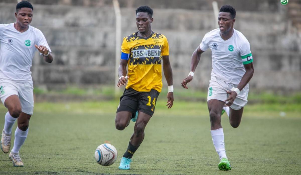 Pas trop sollicité en début de rencontre, Nourou Dine Gakou a été forcé à réaliser une belle parade sur une lourde frappe de Moses après le premier quart d'heure de jeu.