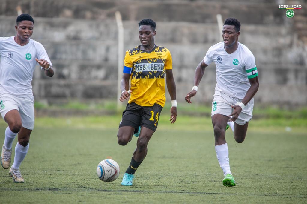 Comme à l'accoutumée, les Lotos Boys ont entamé le match, très confiants avec un pressing haut. Très remuant sur le flanc gauche de l'attaque, Zakiou Abdoulaye va s'offrir la première grosse occasion de la rencontre. Sur un long transversal, la défense des locaux se loupe. Seul devant Serge Obassa, le numéro 11 de Loto-Popo FC perd ses appuis.